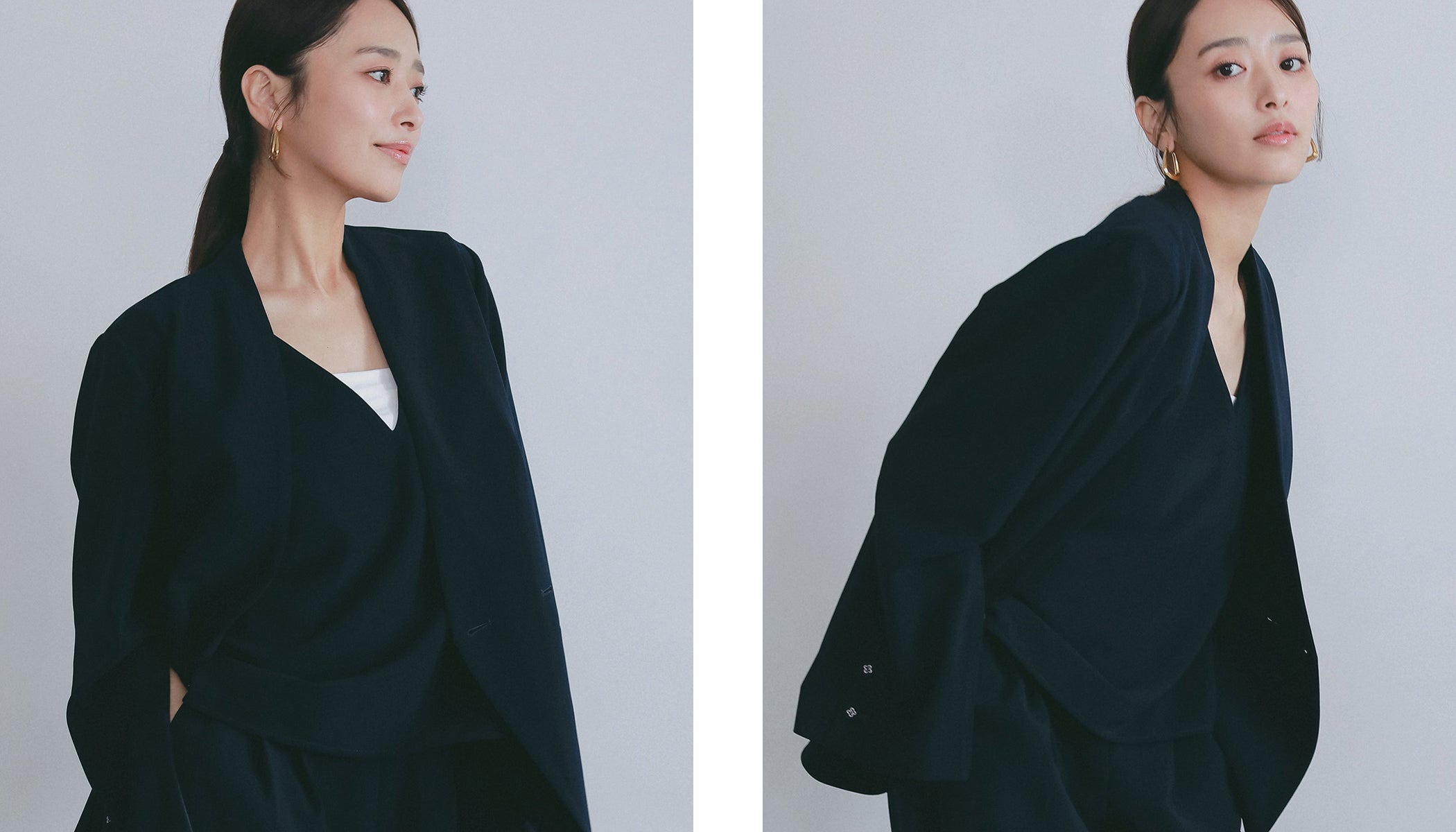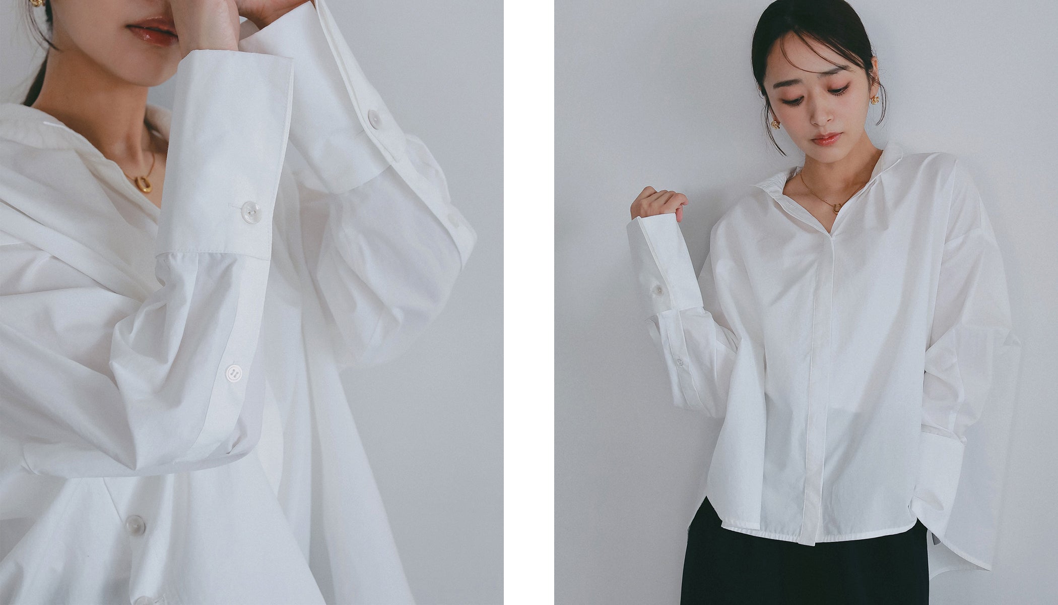 シンプルでミニマルなデザインのため、ブラウスやニット、カットソーなど、どんなインナーとも好相性。