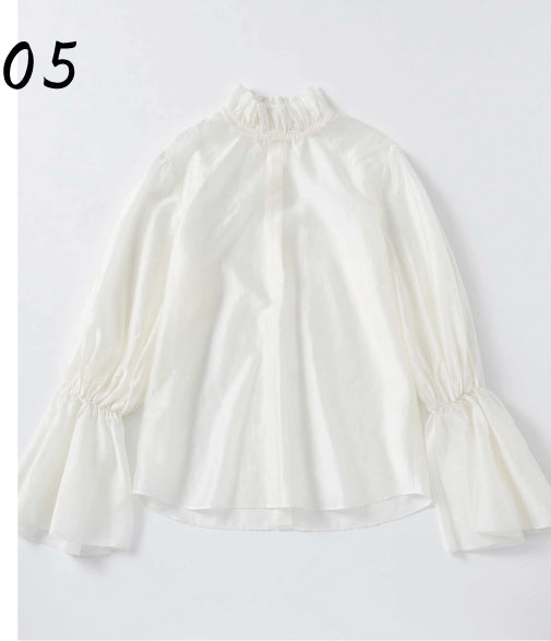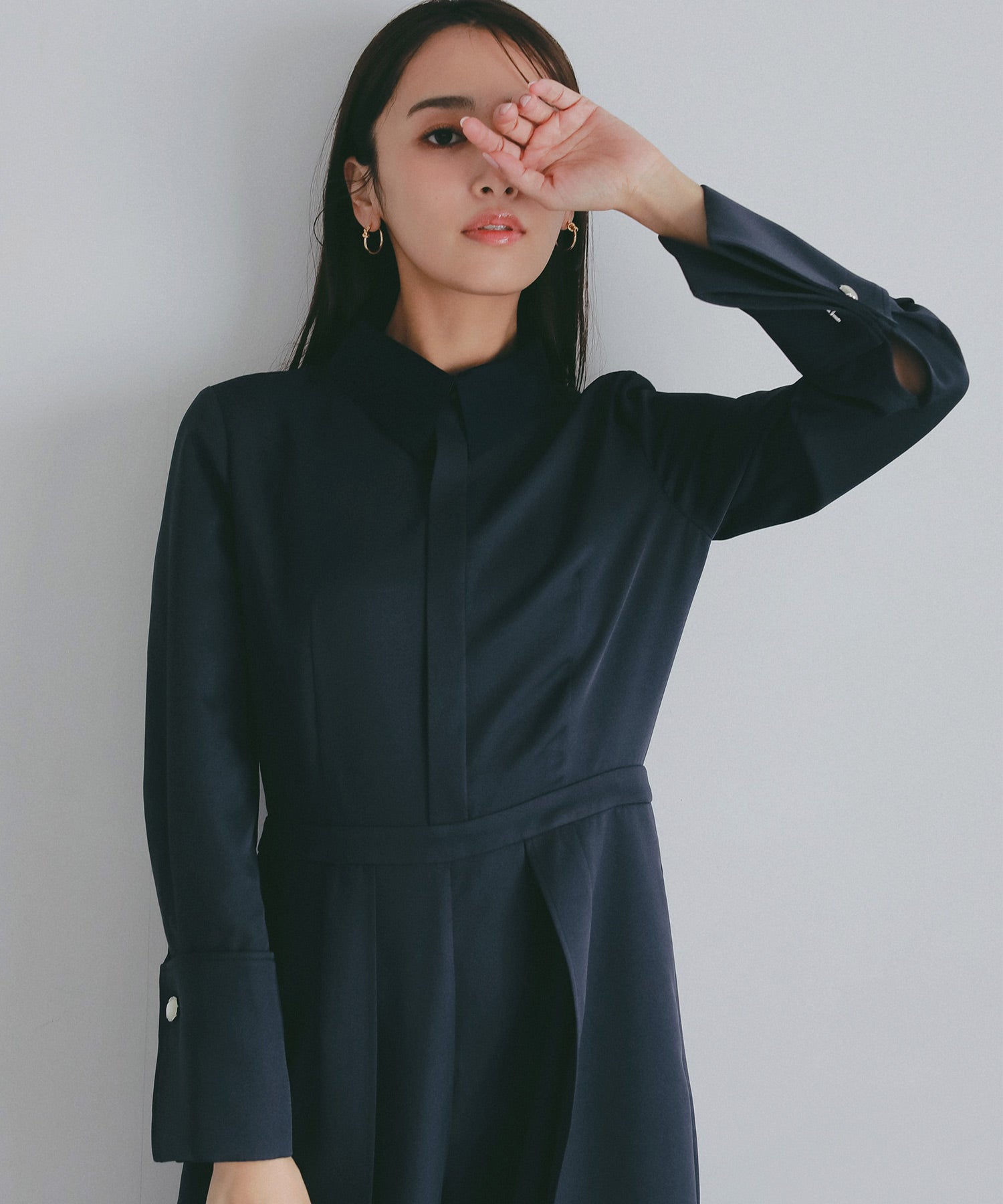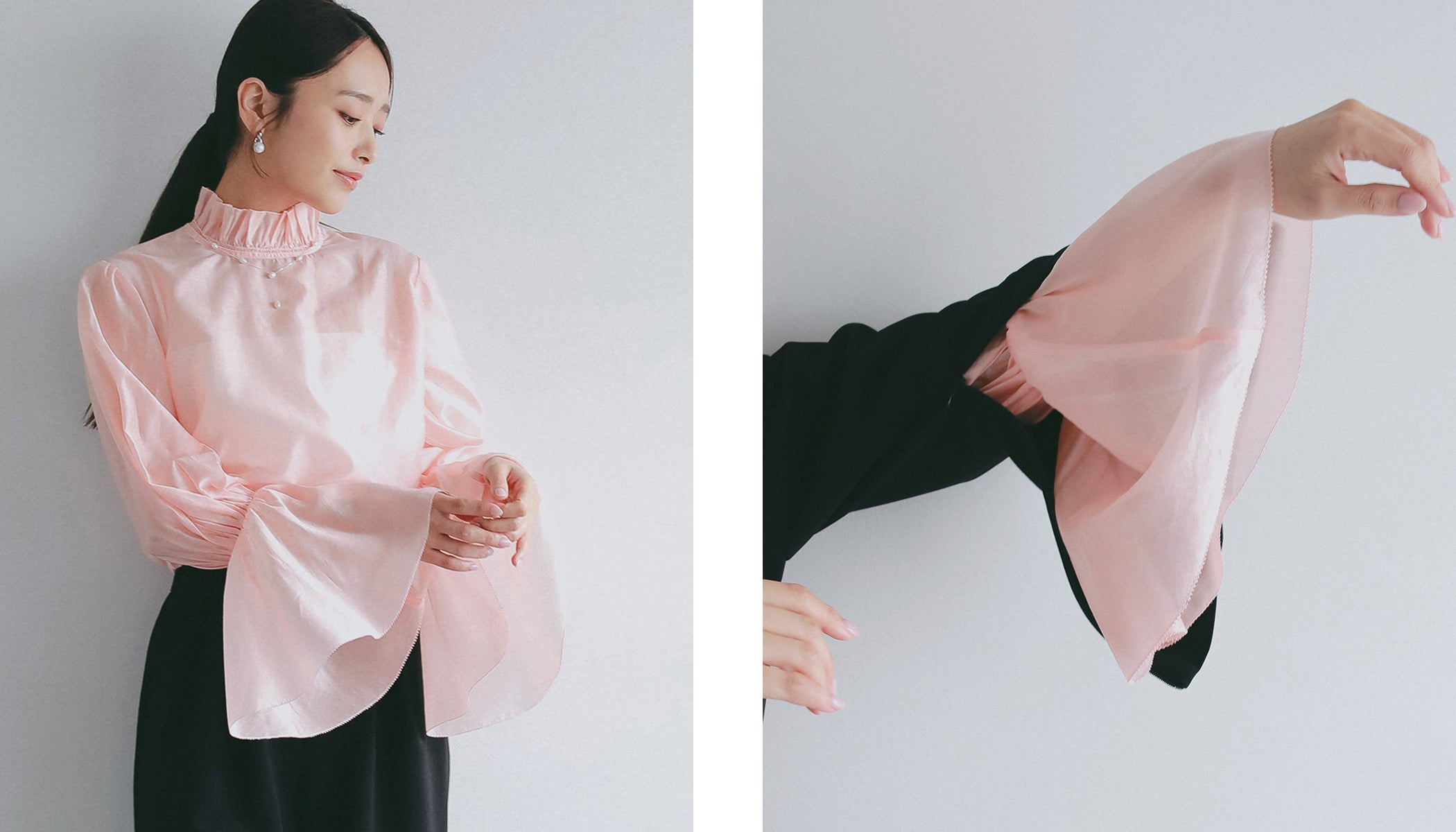 袖にはトレンド感のある大胆なフレアスリーブを採用し、動きのあるエレガントな印象に仕上げました。