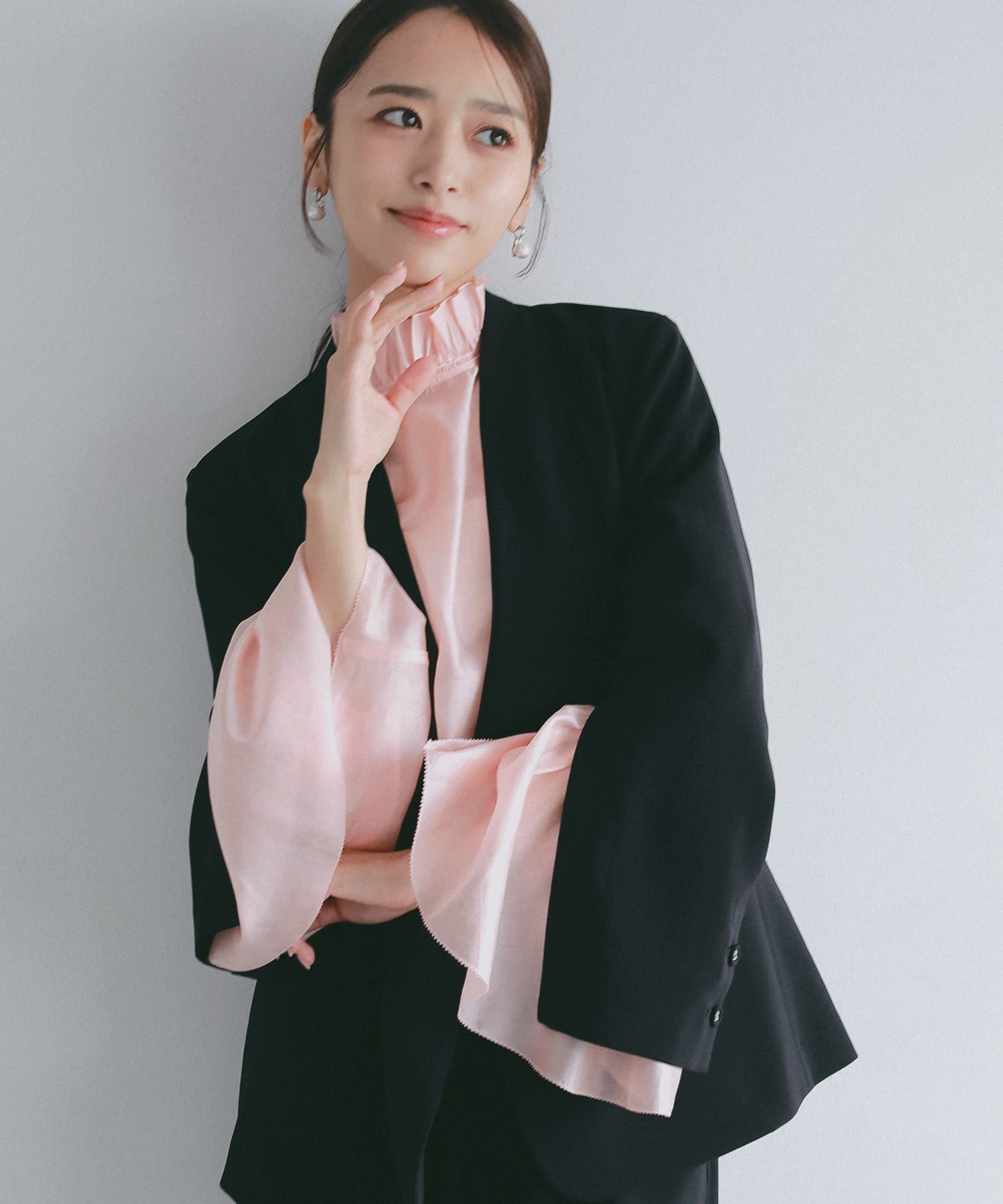 ブラウス&イージーストレートワイドパンツとあわせてセレモニースタイルも実現!