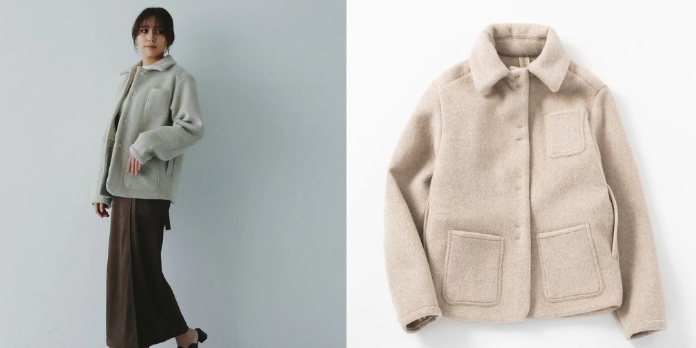 暖かみのある質感と相まって、ジャケットだけど柔らかい印象に。